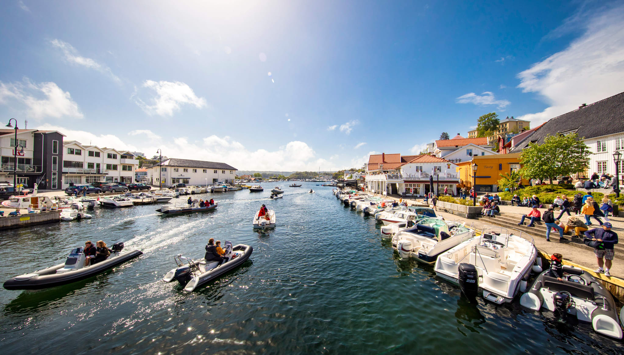 Kragerø sentrum ligger kun 15 minutter unna Kragerø Resort Fri med ferje eller egen båt og er en sjarmerende skjærgårdsperle med yrende folkeliv om sommeren.